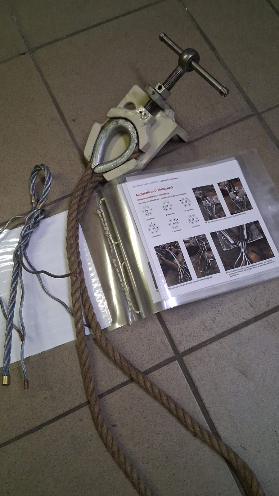 Werkzeuge dafür werden beschafft und erste Versuche im Spleißen der Drähte und Herstellen von Kauschen sind erfolgt.